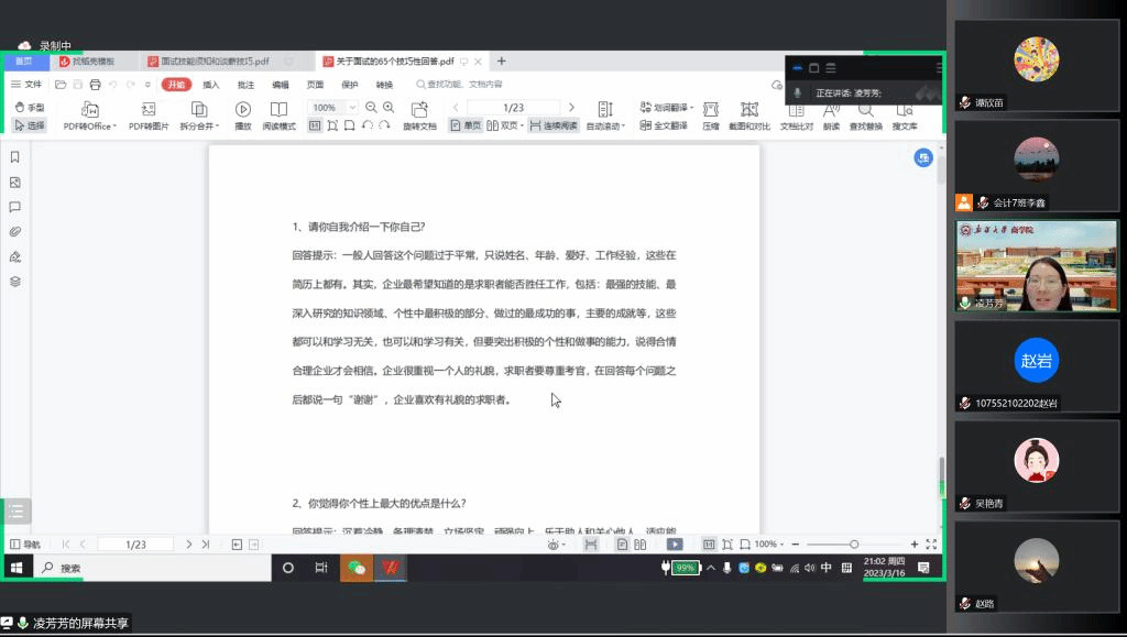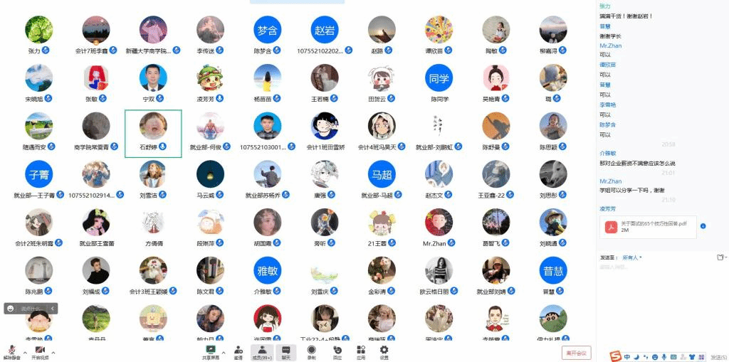 她还最后向同学们分享了一份非常实用的面试技巧文档,希望能够帮助同学们有效应对求职面试。答疑环节,同学们踊跃提问,两位同学耐心解答,学习氛围浓厚,现场气氛热烈。