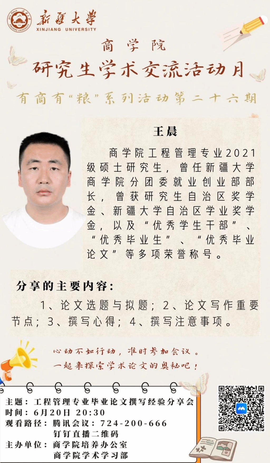 研究生学术交流活动月 有商有“粮”系列活动第二十六期 工程管理专业毕业论文撰写经验分享会