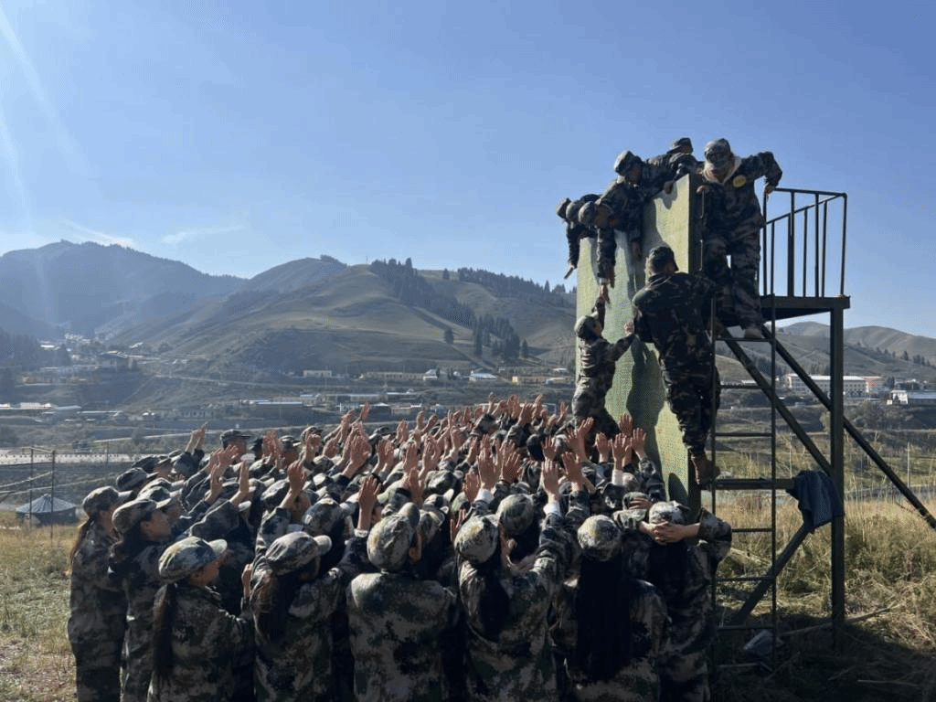 最后,全体同学迎来了极具挑战的“毕业墙”项目。18 个组分成两大组,第一组 162 名同学用时 49 分 27 秒成功翻越毕业墙;第二组 160 名同学更是以 31 分 23 秒的成绩顺利通过。在这个过程中,那些充当人梯的同学默默奉献,用自己的肩膀为队友们搭建起通往成功的道路。当大家成功翻越毕业墙时,现场气氛达到高潮,同学们被团队的力量所震撼,也为自己的坚持和努力而感动。