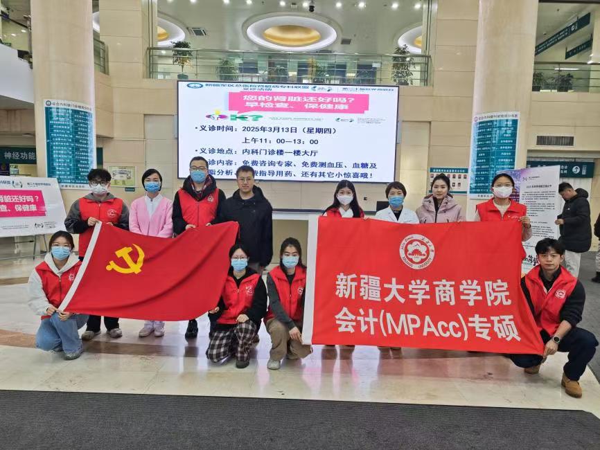 为深入学习贯彻习近平新时代中国特色社会主义思想,传承弘扬雷锋精神,3月13日体育平台官网会计研究生第九、第十党支部联合中国人民解放军新疆军区总医院开展“党旗飘扬志愿红,雷锋精神映天山”主题党日活动。本次活动采用“党建带团建”模式,特别邀请4名团员同学共同参与,与26名党员共同组成志愿服务队,赴军区总医院开展为期两天的志愿服务,以实际行动践行初心使命,彰显新时代青年党员团员的责任担当。
