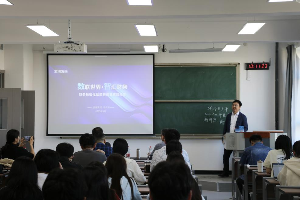 讲座伊始,毕经理结合当下数字化发展的大背景,阐述了财务数字化转型的紧迫性与重要性。他指出,财务数字化转型已成为提升企业竞争力和实现可持续发展的关键路径。随后,他详细介绍了浪潮海岳等相关数字化平台在财务领域的应用,通过实际案例展示了利用数字化技术优化财务流程、深度挖掘与分析财务数据的方法,以及如何借助智能工具提升财务管理的效率。同时,他还分享了浪潮在推动企业财务数字化转型过程中的经验与成果,让同学们对财务数字化转型有了更直观、更清晰的认识。