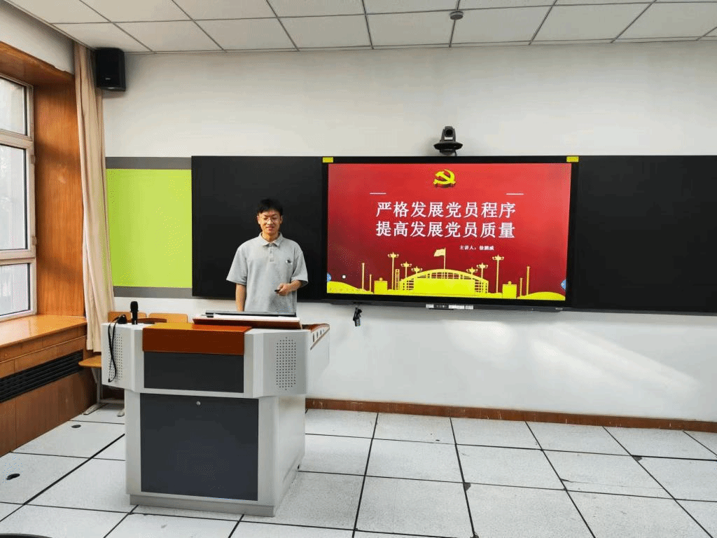 本次培训主题由体育平台官网团委副书记赵杰文主讲“铸牢中华民族共同体意识——新疆区情教育”,辅导员徐鹏威主讲“严格发展党员程序,提高发展党员质量”。