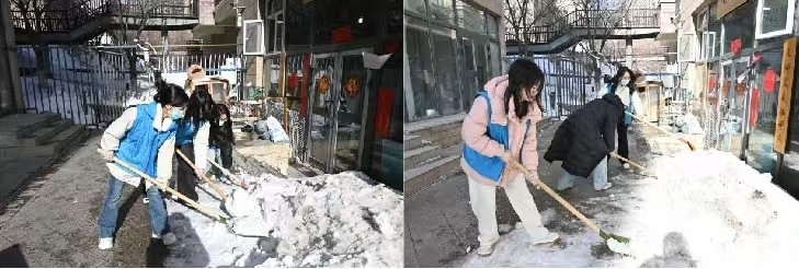 随后,志愿者们发现救助站门口积雪结冰,影响出行,便自发组织铲雪。大家三人一组轮流上阵,手持铁锹奋力清除积雪。在寒风中,志愿者们低头弯腰,铁锹与冰面碰撞的声音此起彼伏。经过辛勤的努力,积雪被彻底清理,道路恢复畅通。活动最后,大家与猫咪共同合影,定格成最暖的春日剪影。