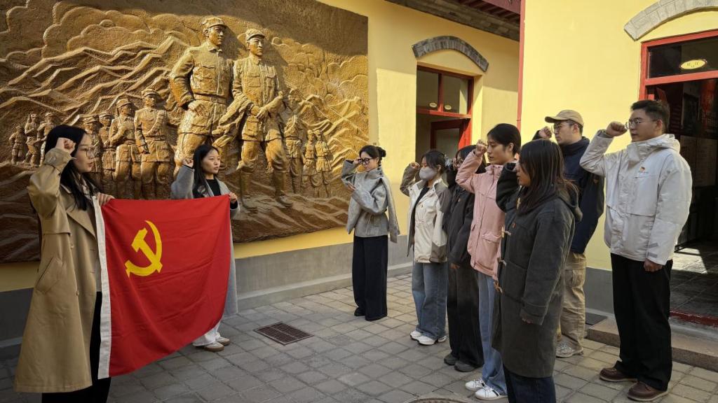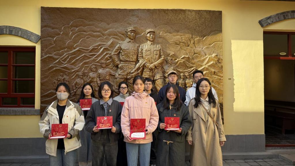 在纪念馆的红色氛围中,活动进入庄严的宣誓环节。全体团员面向团旗,在团支书吴益明的领誓下重温入团誓词,坚定跟党走的决心。随后,全体党员在组织委员魏娅妮的领誓下,面对鲜红党旗,高举右拳,重温入党誓词。铿锵有力的誓言在馆内回荡,与革命先烈的精神遗志深刻共鸣,进一步激发了当代青年的使命与担当。
