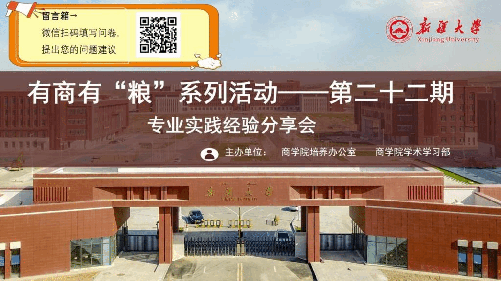 “春风浩荡满目新,奋楫扬帆正当时”。有商有“粮”系列活动作为一个周期性活动,旨在为同学们提供学术学习干货和学术交流平台,之后学院将为大家邀请更多的优秀才干进行学术学习交流,敬请期待下一期有商有“粮”活动!也祝愿大家“鹏北海,凤朝阳,又携书剑路茫茫”。