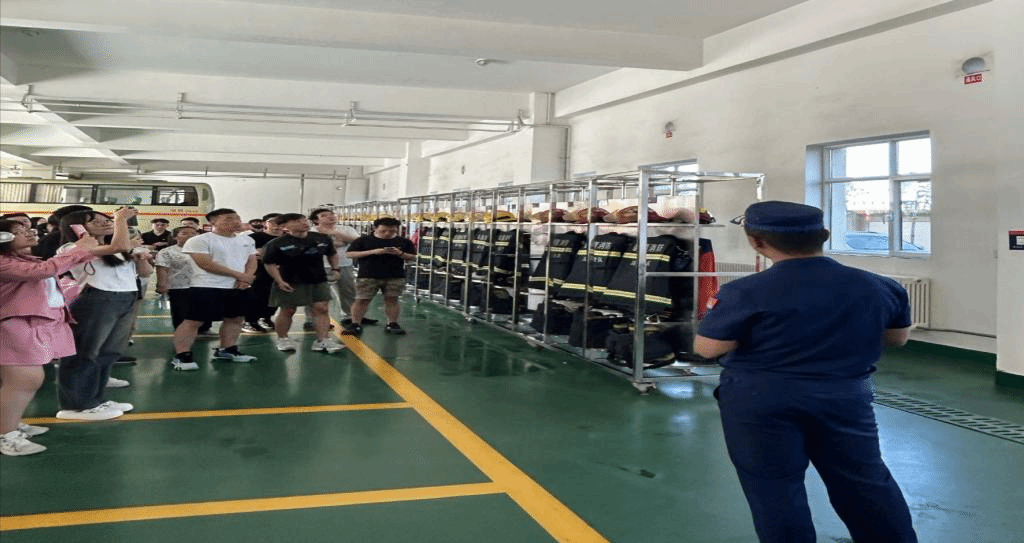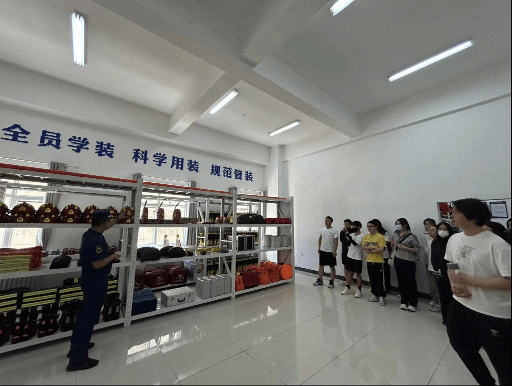 在互动体验环节,同学们纷纷穿上消防服,亲身感受了消防员们执行任务时的重量与责任。穿上消防服的同学们既兴奋又紧张,对消防员这一职业的敬重之情油然而生。此外,师生们还参观了战斗班、荣誉室等库室,深入了解了消防员们的日常工作、业余生活以及队站的发展历程、荣誉和成绩。看到消防员们获得的各项荣誉和证书,师生们深刻感受到了他们为保卫人民生命财产安全所付出的辛勤努力和巨大牺牲。