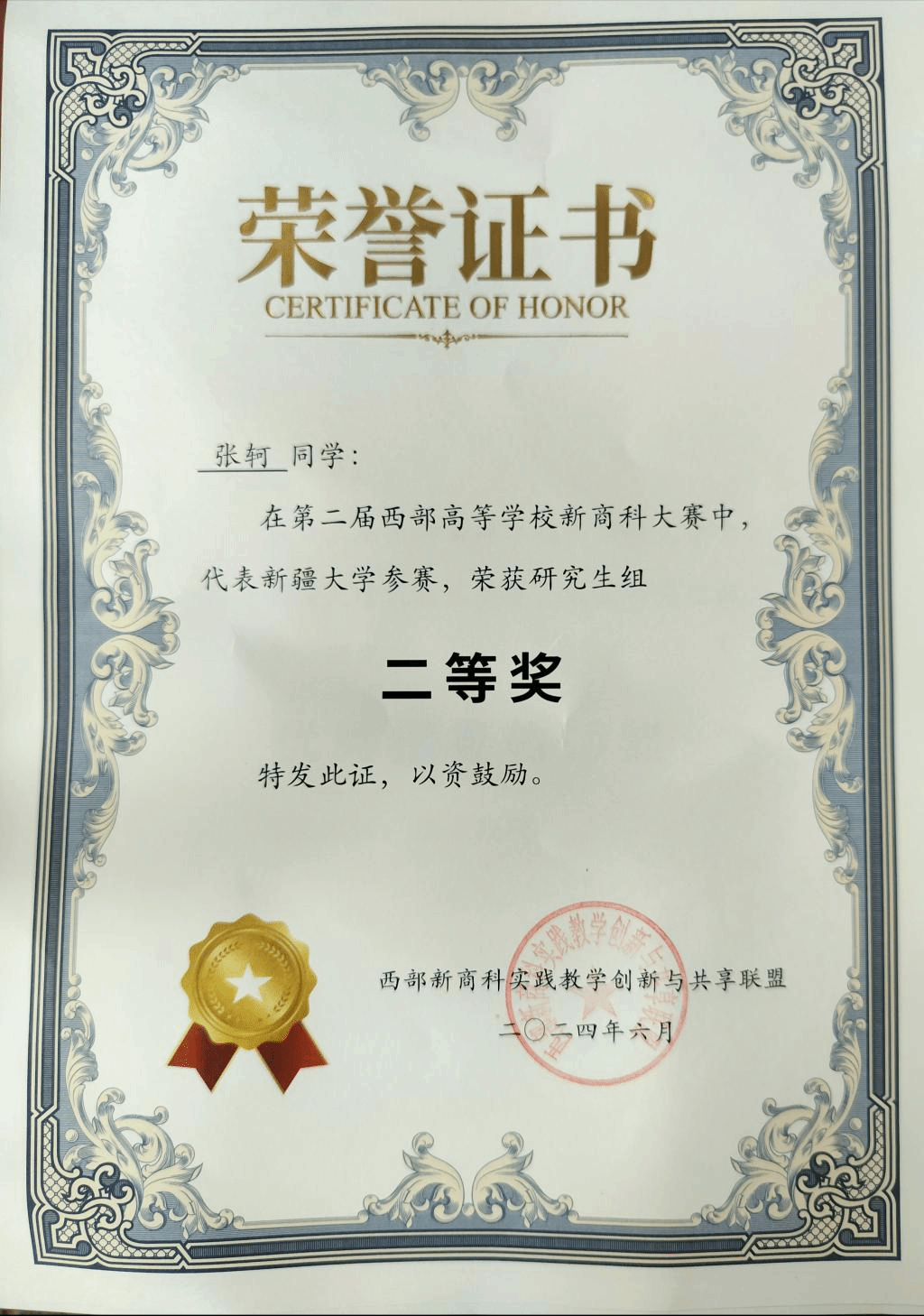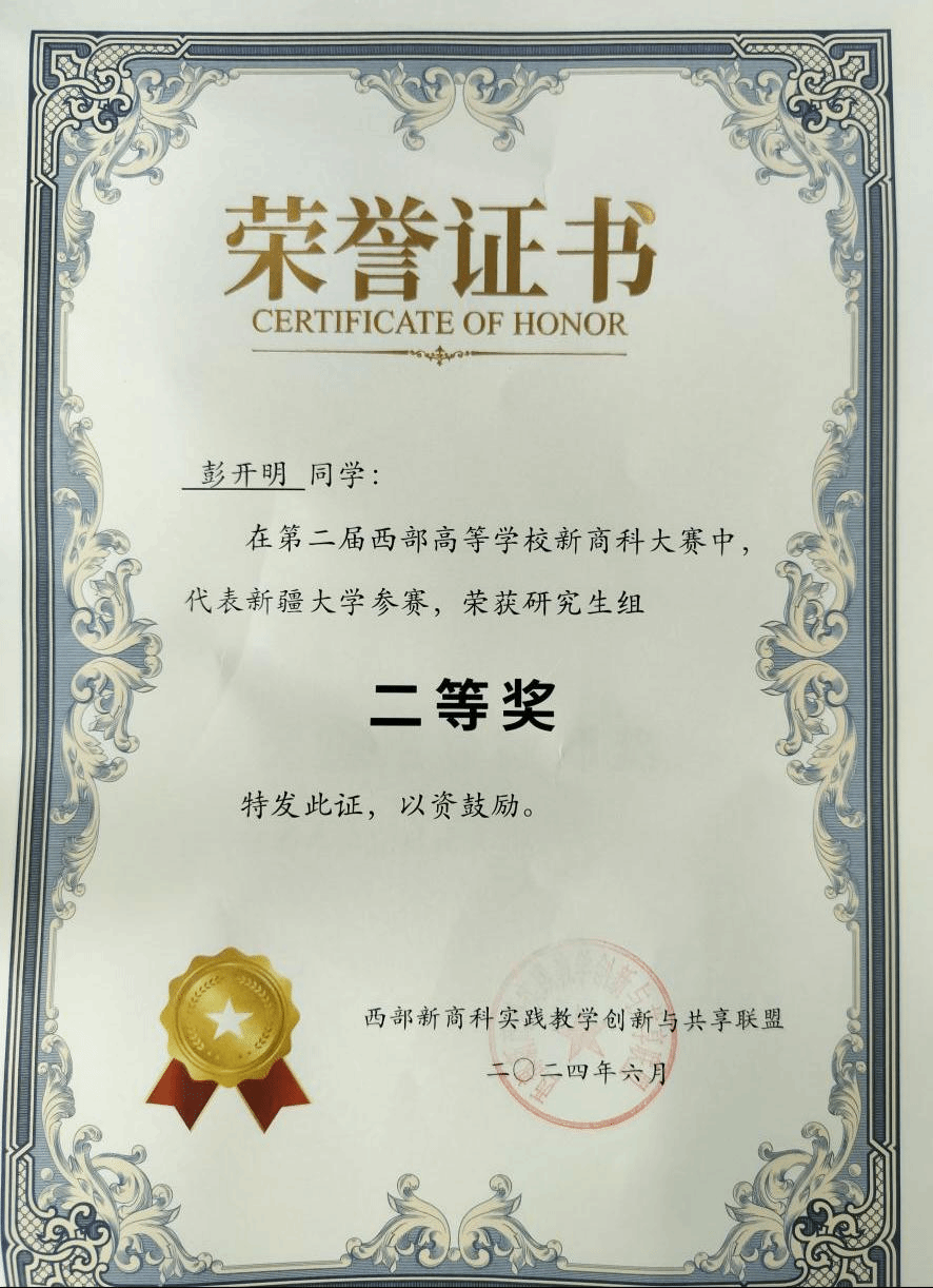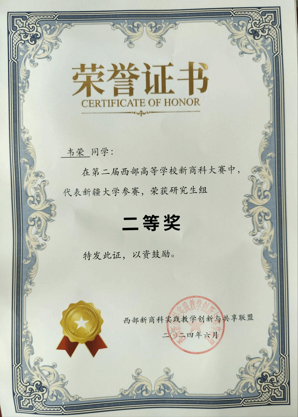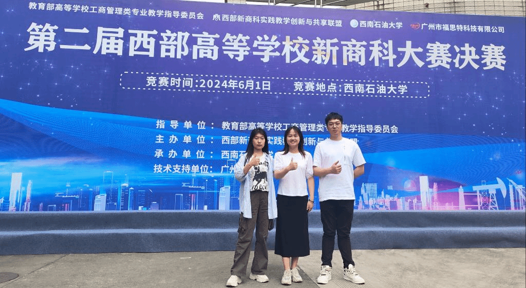 第二届西部高等学校新商科大赛总决赛于2024年6月1日在西南石油大学成功举办。体育平台官网3名研究生(韦荣、彭开明、张轲)组成的团队经过激烈的角逐,最终荣获全国二等奖,体育平台官网指导教师陈佳佳和经管学院指导教师郭扬获得优秀指导教师奖。
