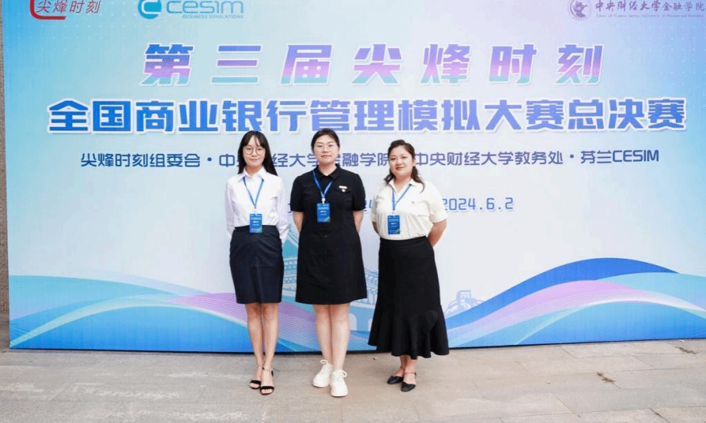 5月31日至6月2日,第三届“尖烽时刻”全国商业银行管理模拟大赛总决赛在北京中央财经大学举行,体育平台官网2023级工商管理专业的于婧、任淑静、孟珠琳同学和2023级会计专业的张轲同学组成的“Eason不坑”队在历经一番鏖战后斩获全国二等奖和尖烽海报奖,指导老师陈佳佳荣获优秀指导老师奖。