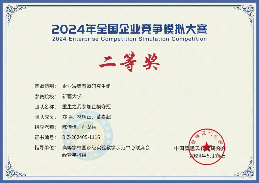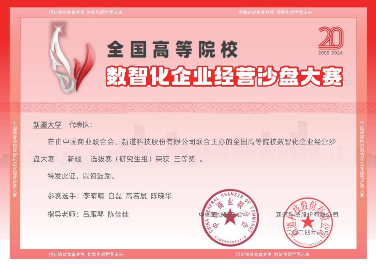 全国高等院校数智化企业经营沙盘大赛新疆选拔赛喜获新疆三等奖